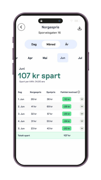 - Strømregning inkludert Norgespris, slik at du alltid ser den reelle kostnaden din.