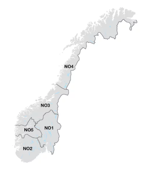 Norge er delt inn i 5 ulike elspotområder