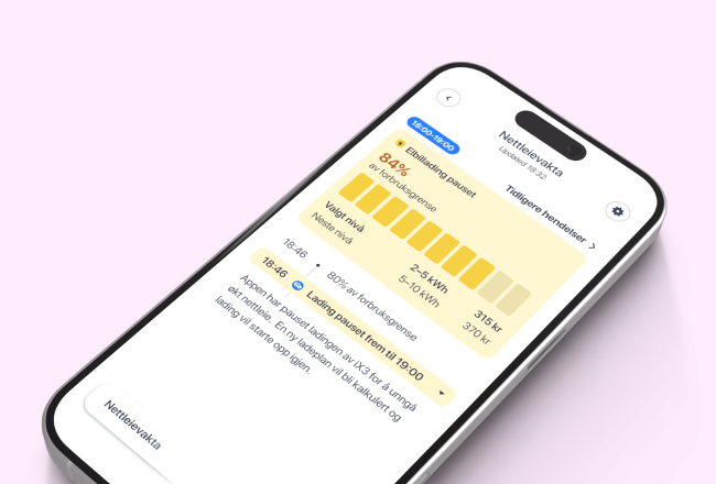 Perfekt for deg med elbil. Med nettleievakta kan du unngå høy nettleie og spare penger. Vi pauser automatisk ladingen av bilen din hvis du er på vei til å gå opp et pristrinn på nettleia. Du setter ønsket forbruksgrense, vi tar oss av resten.